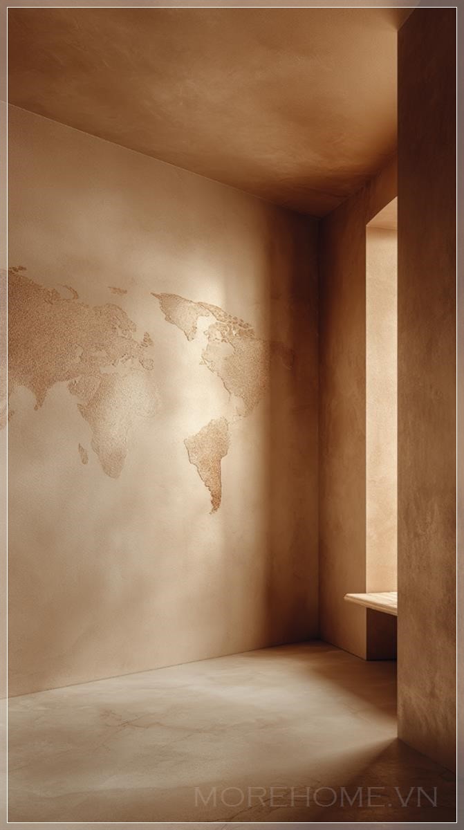 Với tone màu nâu nhẹ nhàng và ấm áp, bức tường này không chỉ mang lại cảm giác dễ chịu mà còn gợi lên sự bình yên, lý tưởng cho những không gian yên tĩnh như phòng làm việc hay không gian tiếp khách. Màu sắc này kết hợp hoàn hảo với các vật liệu tự nhiên như gỗ, đá hay vải lanh, tạo ra sự đồng nhất và cân bằng trong toàn bộ không gian. Sự lựa chọn này không chỉ đẹp mắt mà còn bền vững, thích hợp với những ai yêu thích không gian sống hòa hợp với thiên nhiên.