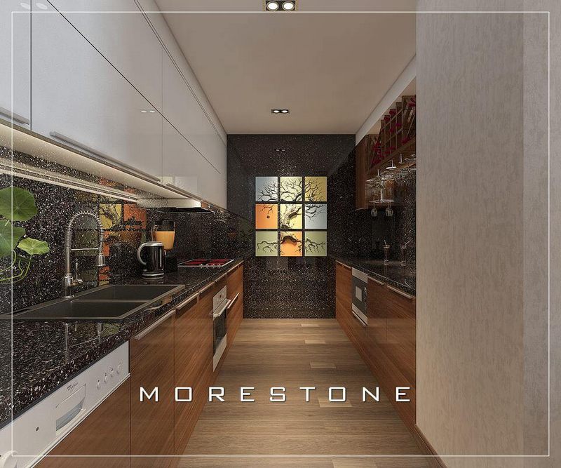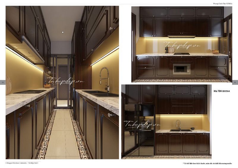 Mẫu tủ bếp đẹp kiểu dáng chữ i được bố trí đặt song song, giúp cho không gian nấu nướng thêm gọn gàng, sang trọng mà không kém phần tiện nghi