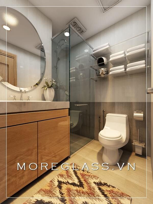 Mẫu thiết kế phòng tắm nhỏ cho các căn hộ chung cư, nhà phố được sắp xếp nội thất và thiết bị vệ sinh hợp lí, tiện nghi để tạo ra một không gian sử dụng thoải mái.