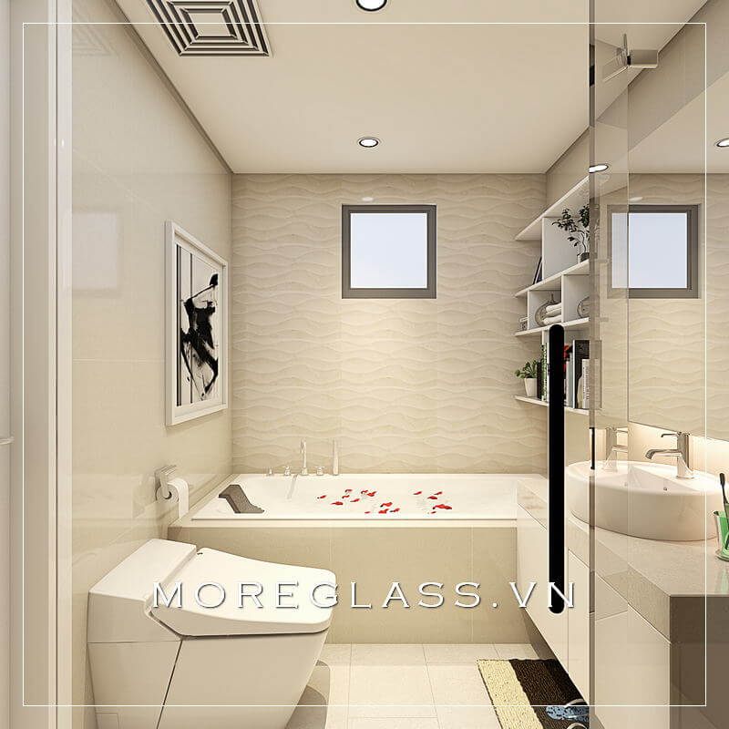 . Tạo ra một không gian thư giãn tuyệt vời bằng cách sử dụng mẫu thiết kế phòng tắm hiện đại với nội thất, thiết bị vệ sinh đơn giản nhưng tinh tế.