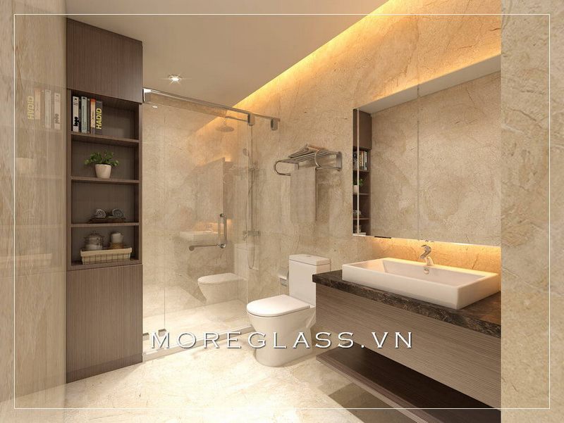 . Thiết kế phòng tắm hiện đại với các thiết bị vệ sinh đơn giản và tiện nghi đang được nhiều gia chủ ưu tiên.