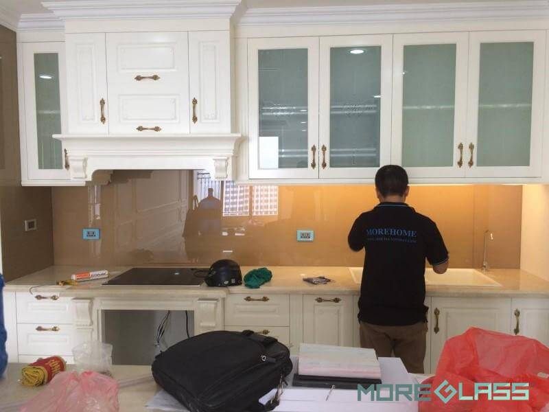 Việc thi công kính ốp cường lực màu nhũ cam vàng cho các công trình như chung cư, biệt thự, nhà phố đã được thực hiện.