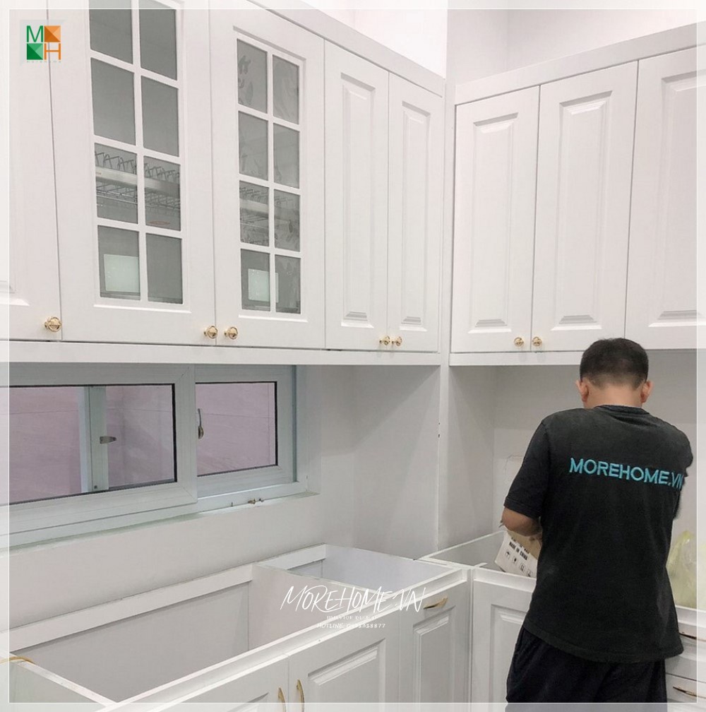 Morehome đã hoàn thiện tủ bếp tân cổ điển bằng gỗ tự nhiên tại biệt thự FLC ở Thanh Hóa.