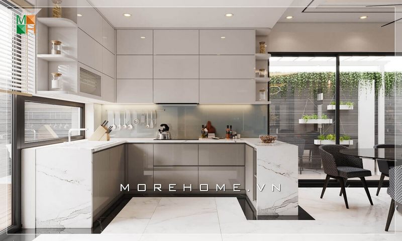 Mẫu tủ bếp trắng gỗ hiện đại và cao cấp sẽ làm cho không gian bếp trở nên thuận tiện hơn.