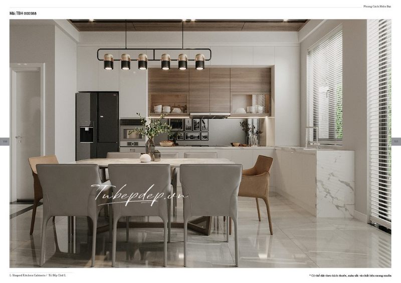 Chúng tôi cung cấp dịch vụ tư vấn thiết kế phòng bếp liền phòng ăn cho các biệt thự, nhà phố hiện đại với hệ thống tủ bếp gỗ công nghiệp nhiều ngăn và bộ bàn 8 ghế thanh thoát, đẹp mắt và thời thượng.