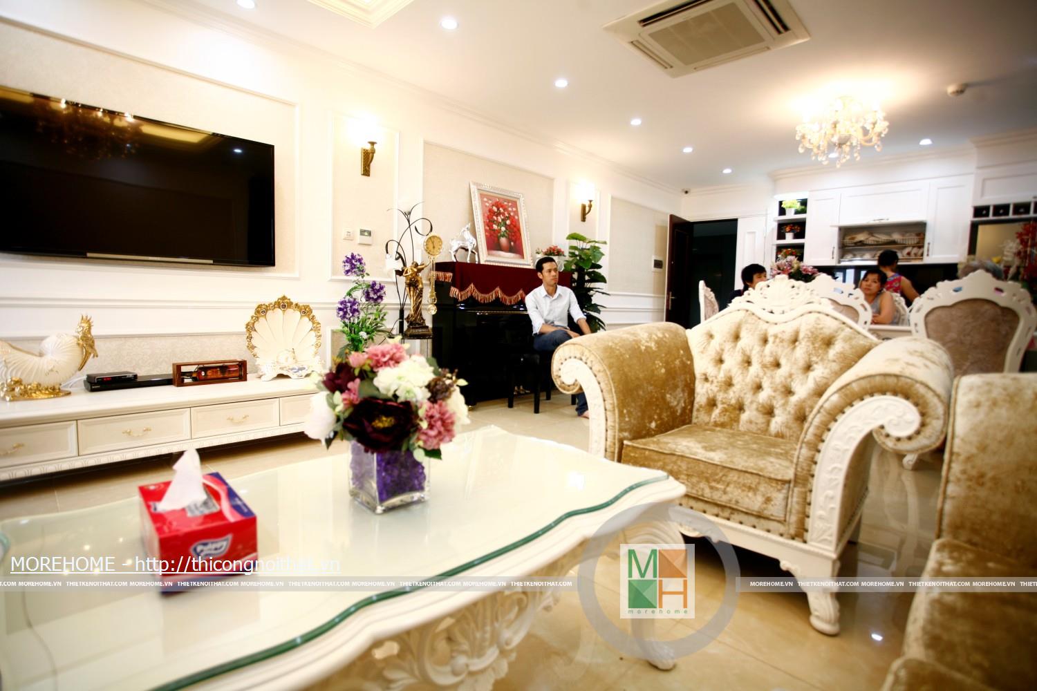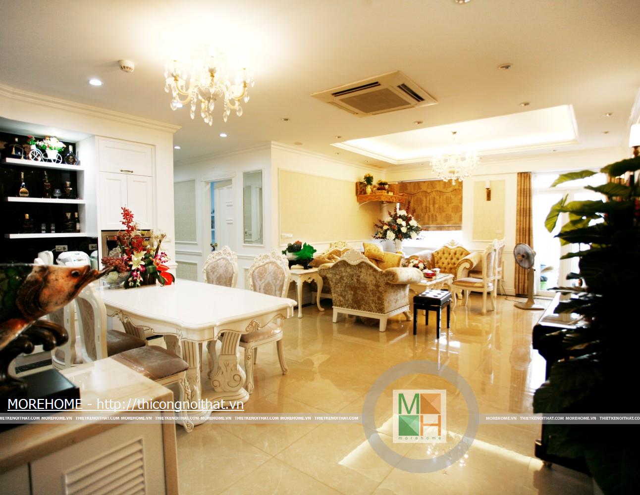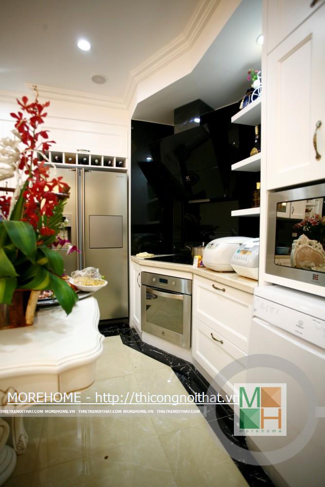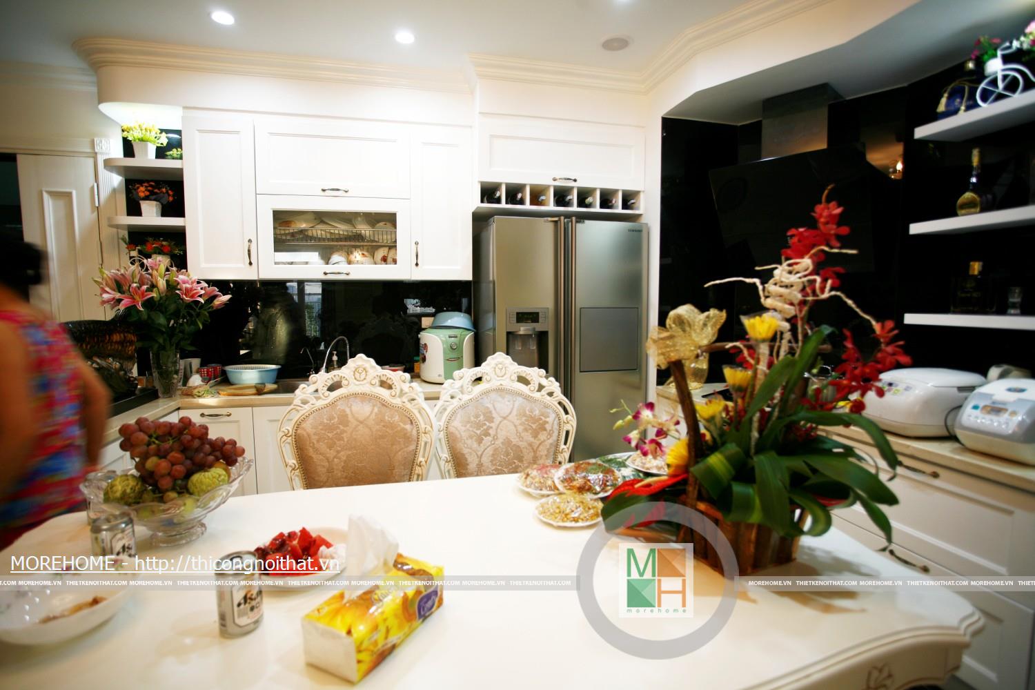 Tủ bếp cổ điển gỗ tự nhiên tại chung cư Sông Hồng Park
